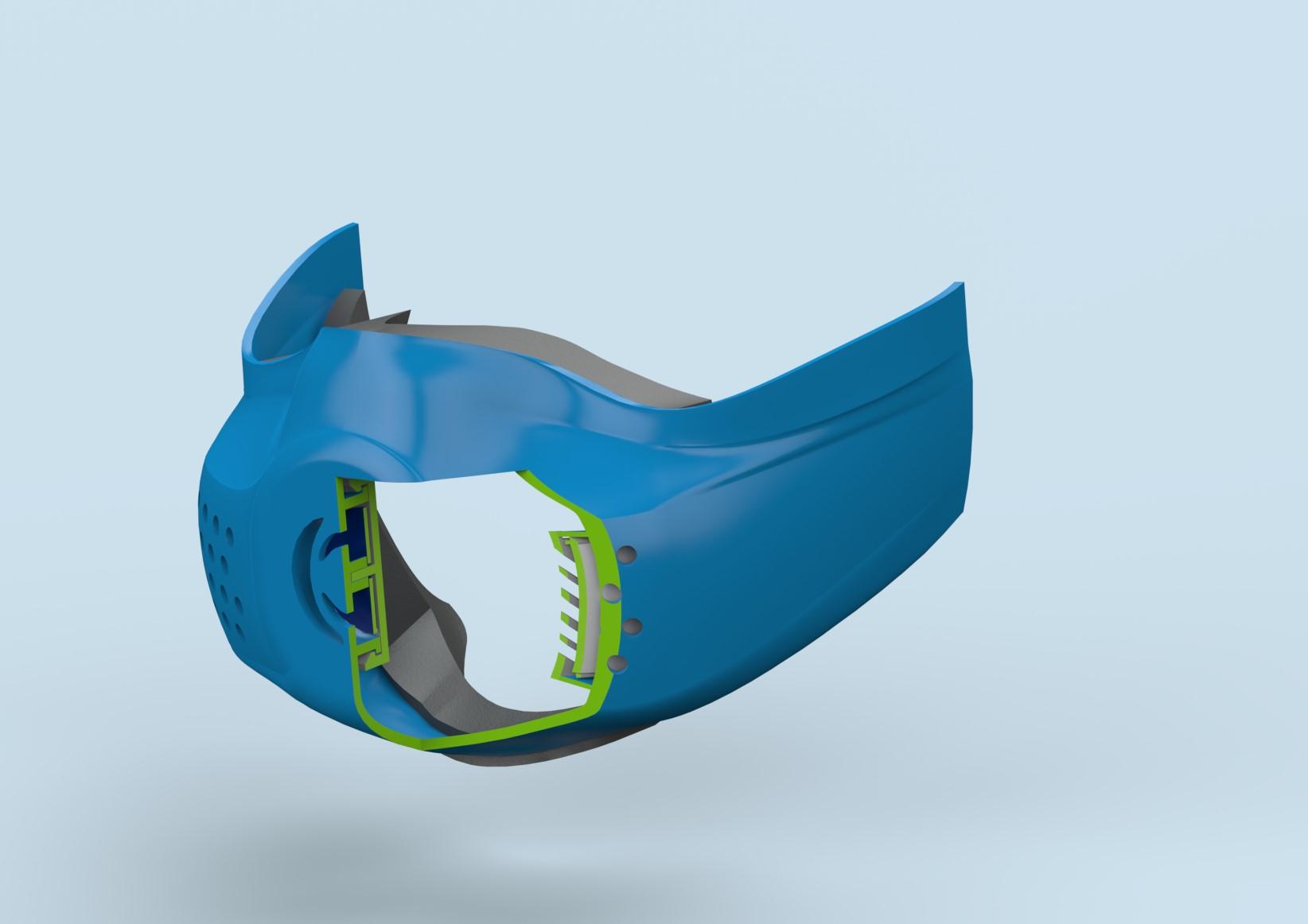 I designed a respirator mask to protect against small droplets and particulates with replaceable particulate filters and an exhalation valve. In addition, it also has a custom fit seal and a filter replacement reminder function.