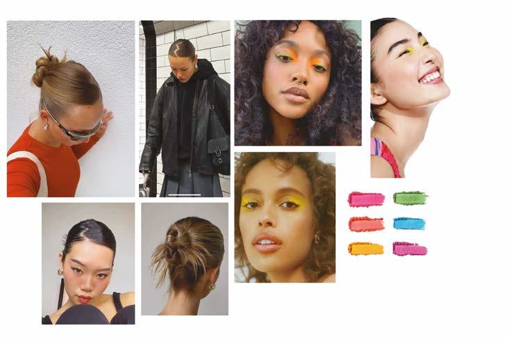 My inspiration for the make up and hair for the shoot, i found the photo above to the left slightly in a Pleats Please campaign so i thought recreating that idea of a pop of colour would work well for my shoot. I decided for a slick back bun to create that model look and i did not want the hair to take away from the outfit.
