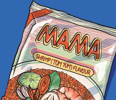 J’ai choisi les nouilles instantanées comme sujet principal, car elles incarnent à la fois simplicité et réconfort. Ces petites portions de bonheur, souvent dévalorisées à cause de leur mauvaise réputation, ont pourtant une histoire riche et une place singulière dans la culture culinaire mondiale. En explorant leurs origines japonaises, liées aux besoins d’une population croissante dans les années 1950, jusqu’à leur réinterprétation dans des rece es modernes et inventives, j’ai découvert tout un univers fascinant. Les nouilles instantanées sont bien plus qu’un plat rapide : elles sont une toile de fond sur laquelle se tissent des souvenirs, des innovations et des traditions. Visuellement, ce livre est aussi une expérience. J’ai voulu capturer une ambiance rétro-pop, inspirée de l’Asie : des couleurs vibrantes et saturées, des motifs puisés dans les esthétiques chinoise et japonaise, et des éléments de vie quotidienne, comme un verre de negroni posé sur un journal ou une boîte de cigare es vintage. Ce projet m’a permis de jouer avec mon style, passant de croquis légers et colorés au marqueur à des compositions plus élaborées, travaillées dans les moindres détails.