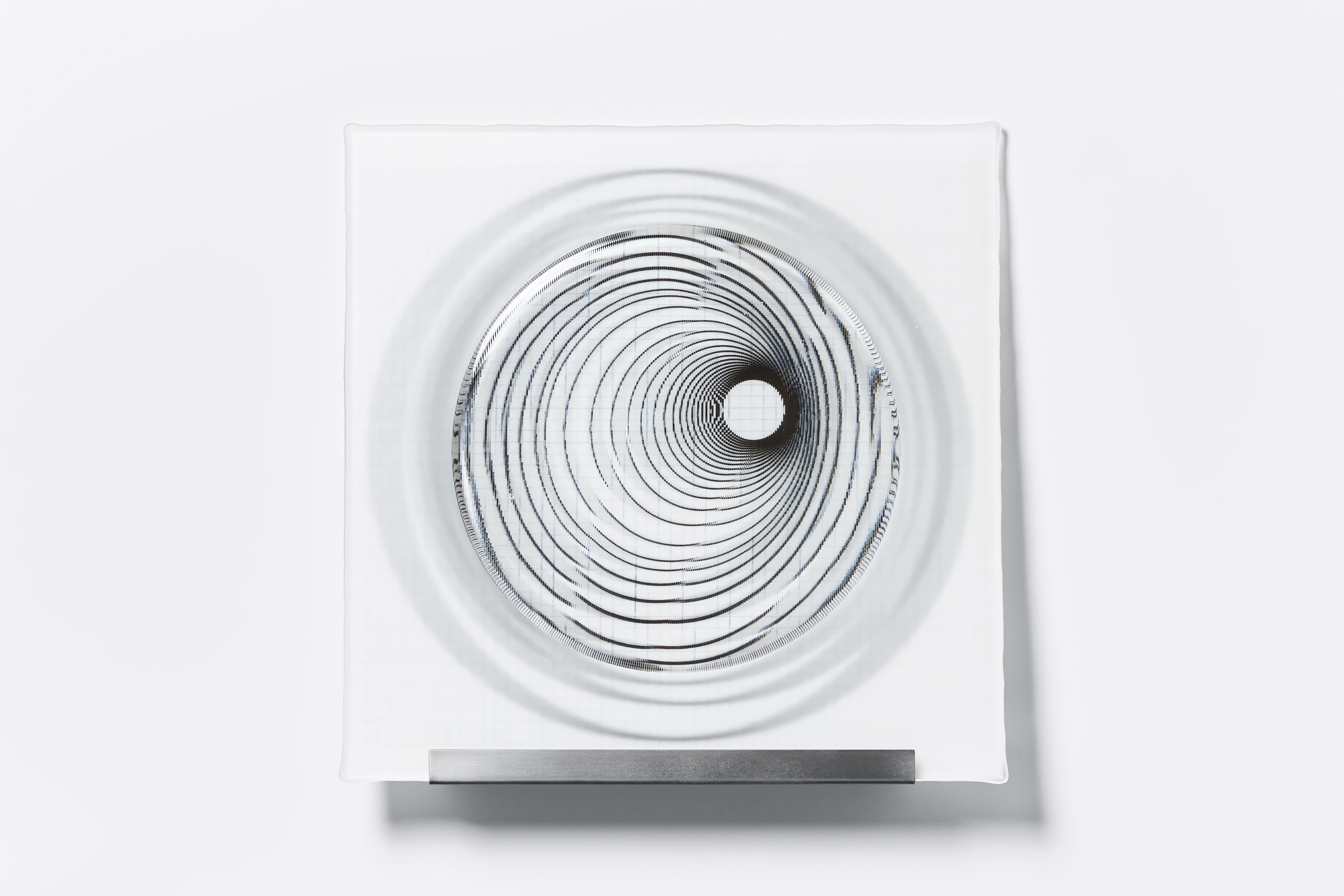 Asymmetric Vortex, 2019, Kiln-formed glass, ceramic transfer and steel