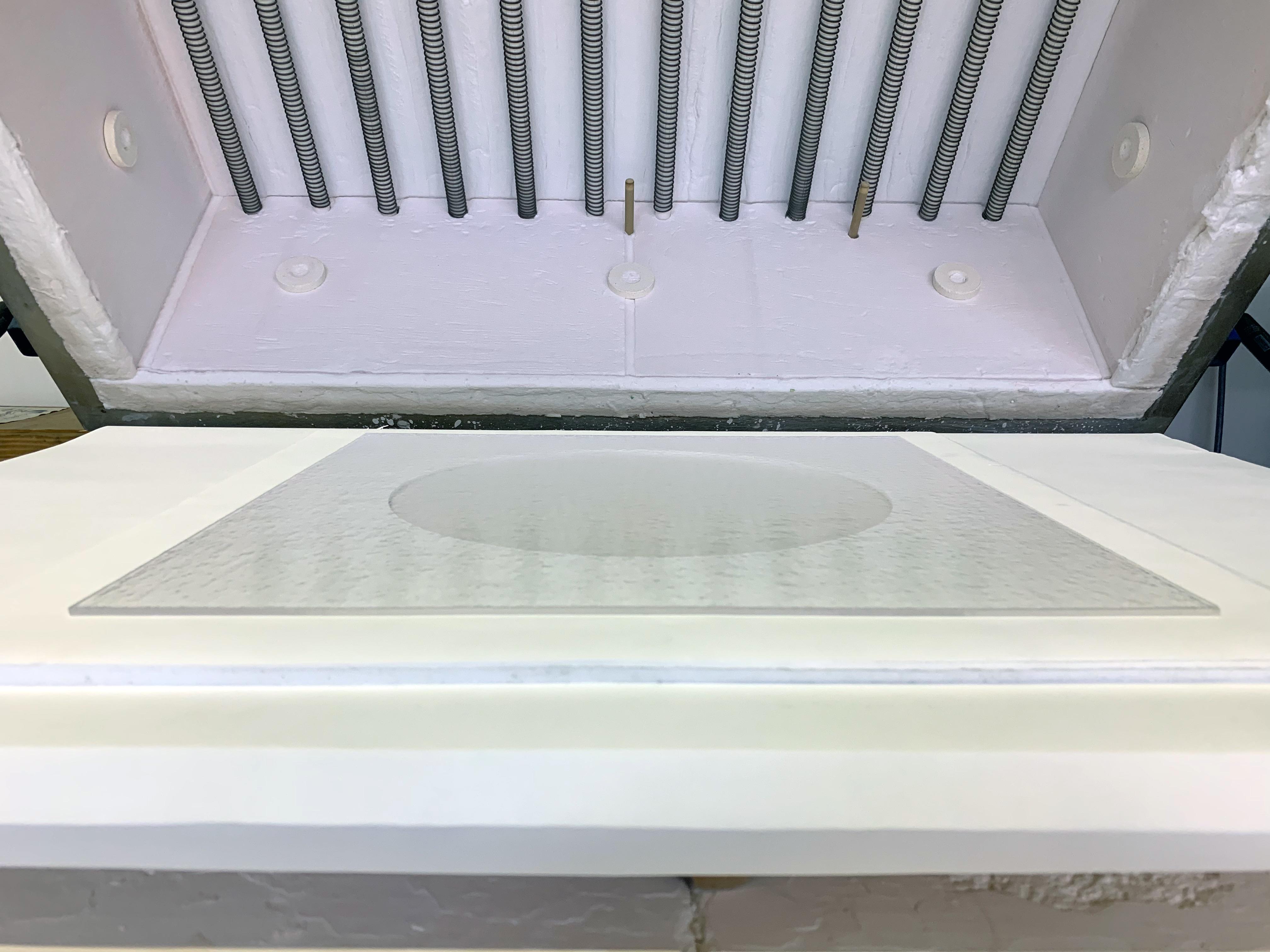 These high risk works need to be millimetre perfect in order for the lens and image to mesh accurately and generate the required image, form or pattern. Achieving the fine margins needed, when working with what are hands-off kiln-forming processes - as the piece is in the kiln, are a result of years of glass making knowledge.