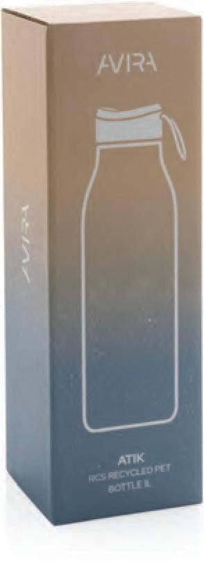 Materiale : rPET ● Volum (I liter) : 1 ● Isolasjon : - ● Holder seg varm/kjølig : - ● Lekkasje- / sølesikker : √ / √ ● Vekt (gr) : 170 Størrelse 26,6 x ø 8,3 cm Trykkstørrelse 80 x 35 mm Trykk teknikk Tampotrykk