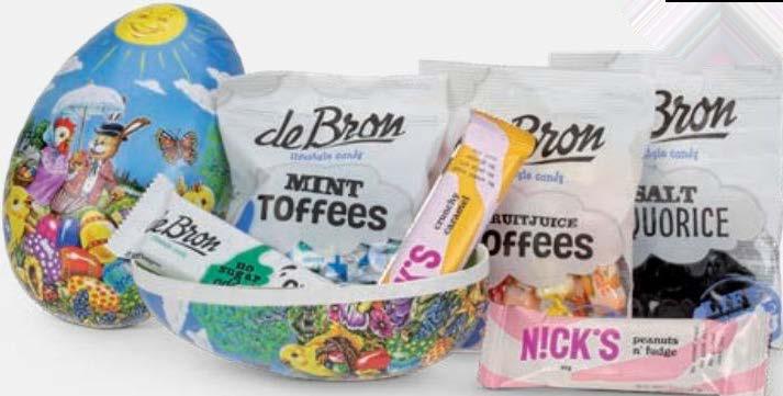 Innhold: DeBron Choc Water34g, NicksPeanuts N 'fudge 40g, De Bron Salt liquorice 100g, NicksCrunchi Caramel28g, DeBron mint toffees 90g, De BronMilk Chocolate 85g, De Bron Mini Marshmallows 75g, DeBron CherryGums90g, DeBron Fruitiuice Toffees90g. 470,