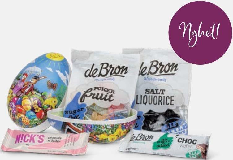 Innhold:De Bron Choc Water34g, NicksPeanutsN ·tudge 40g, DeBronSalt liquorice 100g, DeBron PokerFruit 100g.