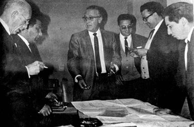 Figura 1. Charles V. Theis y Mahdi S. Hantush (primero y segundo, de izquierda a derecha) fueron iniciadores de la geohidrología moderna. En el centro, Ignacio Sainz Ortiz, y a la derecha José Arreguín, Germán Figueroa y Rubén Chávez.