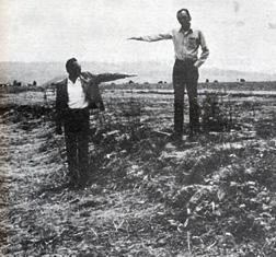 Figura 2. Escalón de una falla. Los problemas de grietas estaban ya presentes en los valles de México, Toluca-Ixtlahuaca y Celaya, Guanajuato. En la imagen, Germán Figueroa y Eugenio Laris.