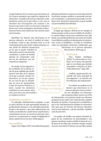Factor clave es la participación del docente, ya que es el facilitador en los procesos de enseñanza y aprendizaje, quienes, apoyados en su preparación, estrategias y medios, conducen a la creación de los conocimientos de quienes acuden a las universi dades, sumando, que intentan modelar conductas, fomentar la expresión de puntos de vista, impulsar el uso del razonamiento y sentido crítico, forman y gradúan talentos, alientan el espíritu emprende dor, habilidades, competencias y labores de inves tigación, motivando a tomar conciencia y partici par en ámbitos de su interés.