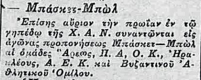 ΗΡΑΚΛΗΣ: Μάντακας, Περιστάνογλου, Μπατζόγλου, Ελευθεριάδης, Καμπουρόπουλος, Κουλίγκας, Ιωαννίδης, Βαλσαμάκης,