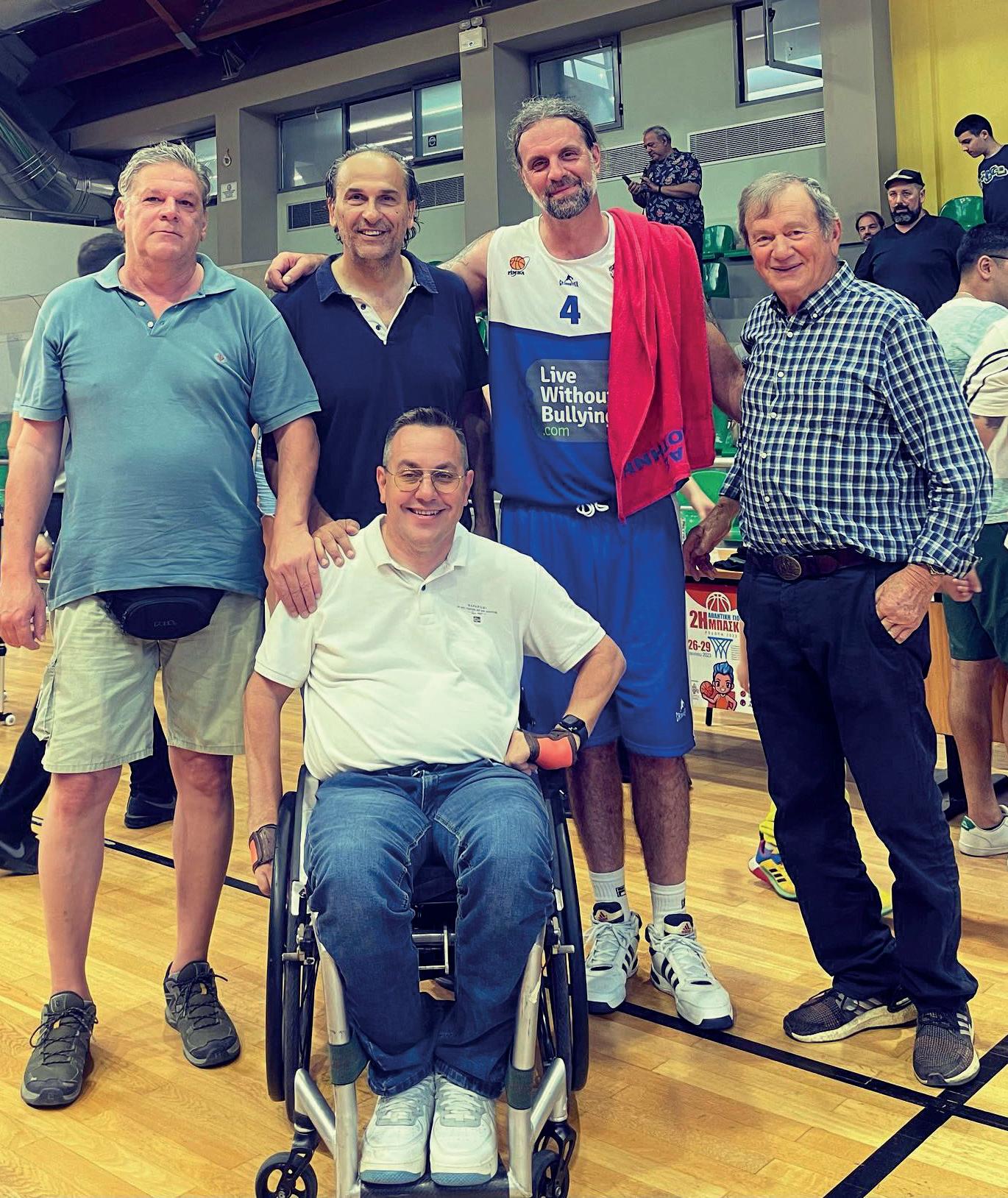 Ζιώκας (διαιτητής) και κάτω οι βετεράνοι Μίνιος Παπαϊωάννου (ΕΑΛ) και Νίκος Νικόδημος (ΓΣΛ).
