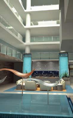 The design bridges the urban an d topographical qualities of the island. From the interior entry lobby the experience of the beach landscape. The units are designed as series of interlocking volumes arranged around a compact central core. The facade of the building is inspired by the textures and lights of the environment.