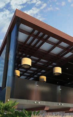 The lobby opens onto an elegant light-filled cafe of rich, exotic wood, glistening white terrazzo, an energetic sculpted ceiling and finely crafted detail.