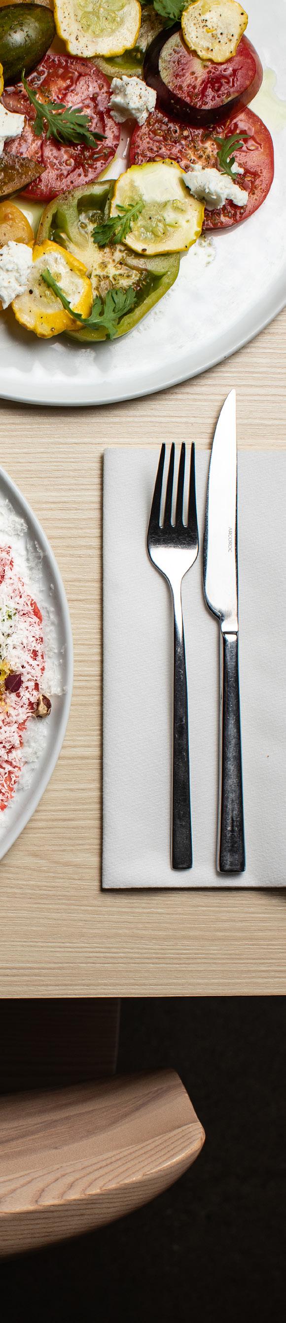 The tomato dish exemplifies how Biollo and sous chef, Josiane Cosette, both NAIT culinary grads, approach the food they serve. “When you work with ingredients like this, you can keep things simple,” Biollo explains. “You don’t need to interfere. You can let the ingredients speak for themselves.”