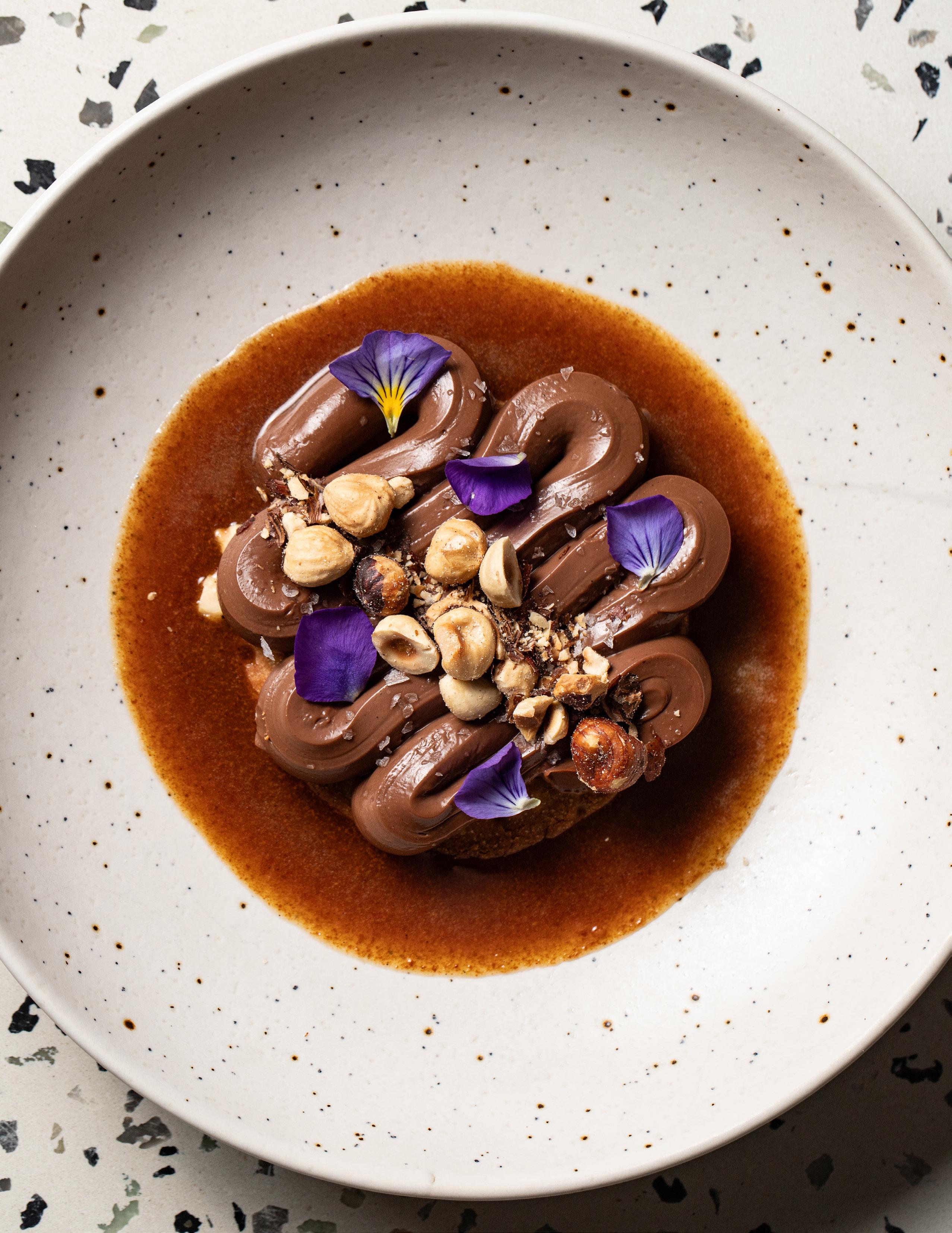 The menu features as many plant-forward dishes as it does protein-focused options, with olives, sourdough bread, salads and pasta appearing alongside fish, pork and Alberta beef. You might want to stop in just for dessert, especially if the chocolate tarte is on offer. It’s a harmonious combination of all the good and sweet things in life: shortbread pastry, chocolate crémeux (like a heavier ganache), caramel and hazelnuts.