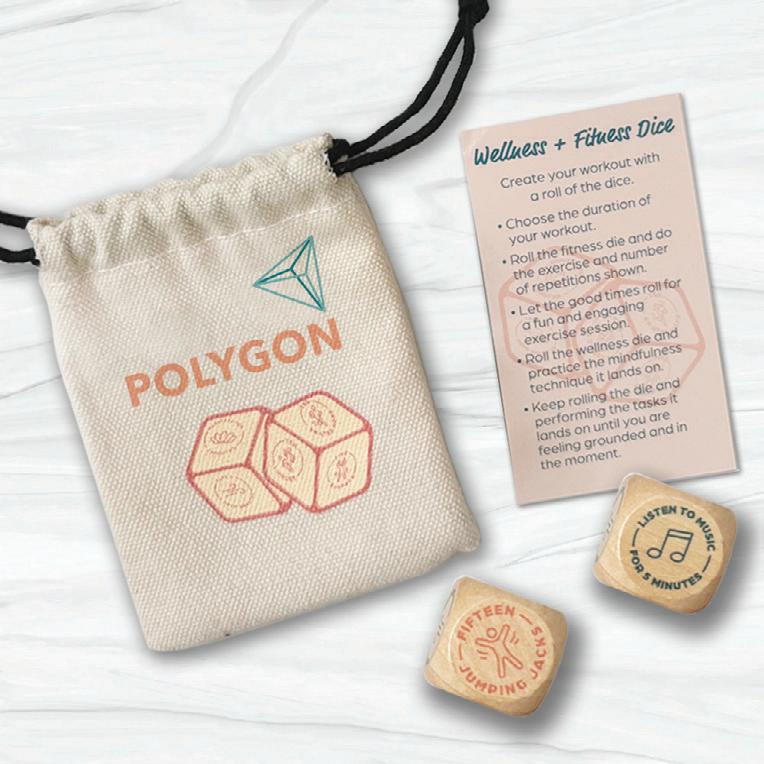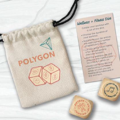 Just roll the dice! Our Health & Harmony Dice Kit is a dynamic tool designed to promote employee well-being and support your company’s wellness initiatives This set features two wooden dice: one with a variety of energizing exercises and the other with mindfulness prompts