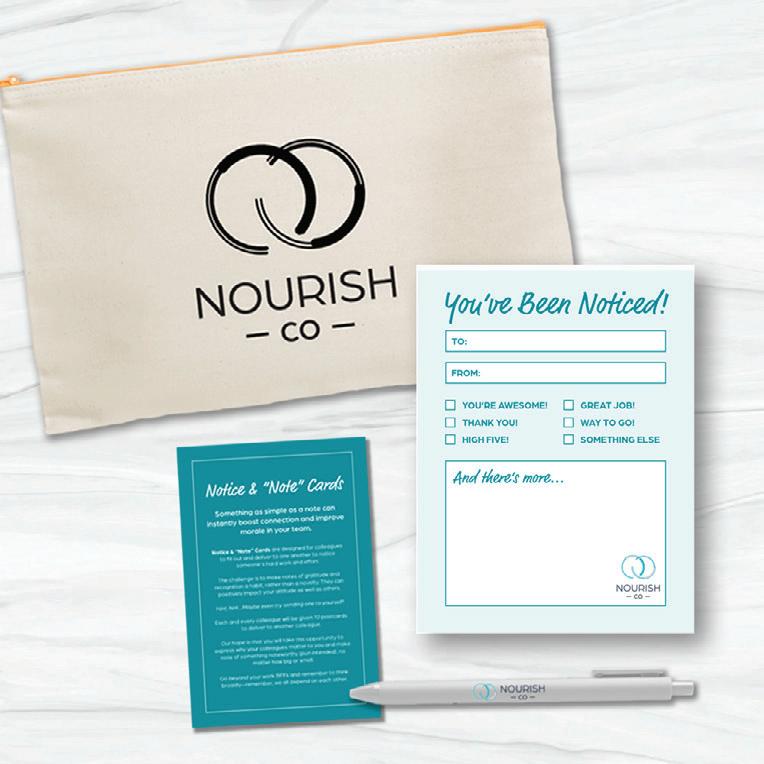 Introducing our You’ve Been Noticed Kit, a hear twarming kit designed to upli ft and inspire your company’s wellness initiatives These specially crafted sticky notes are per fect for acknowledging the hard work, kindness, and achievements of colleagues They are packaged with a pen and natural canvas pouch