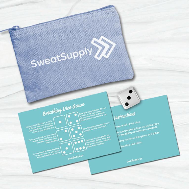 The Breathing Dice Game is an innovative game designed to enhance employee well-being This kit features a single die paired with a card listing various breathing exercises Roll the die and follow the corresponding instructions on the card based on the number rolled All items are conveniently tucked into a por table pouch, making it easy to integrate mindfulness and relaxation into the daily routine