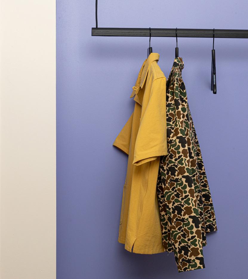 Wooden hanging clothing rack by Kroft Studio, Starting at $79 (various lengths), kroftstudio.co, Mirror by IKEA, shop clothing at shopyowie.com