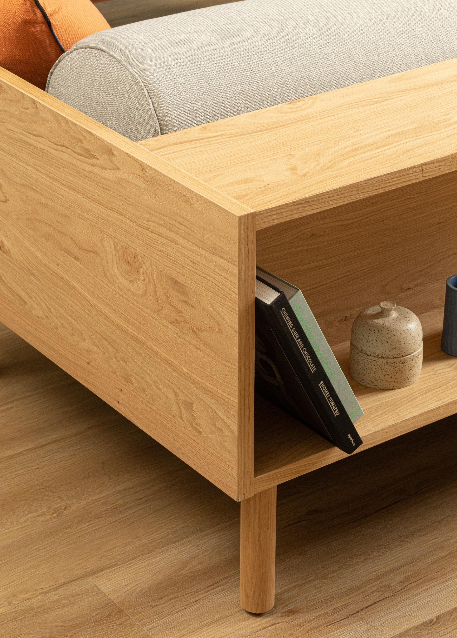 The Souvenir Sofa by Blu Dot might be one of their best yet. A sofa and bookshelf come together to create an artful display of form and function. Solid wood makes for a dazzling surround while serving as a chic spot to show off your ephemera, coffee table book collection, or rest your martini. bludot.com/souvenir-sofa.html