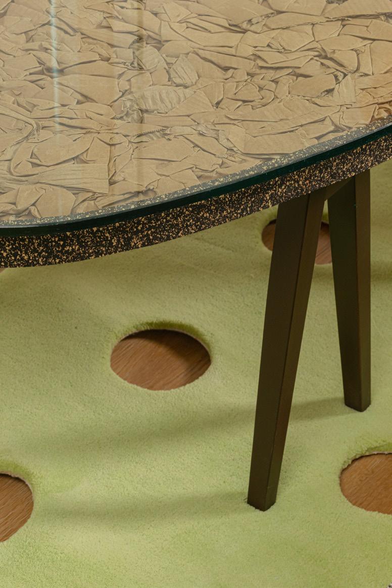 The one-of-a-kind coffee table by artist Billy Dufala is made of 100% found materials from RAIR, a local non-profit and artist in-residency space situated inside a construction and demolition waste recycling company in northeast Philadelphia. RAIR offers artists studio space and access to more than 500 tons of materials per day.