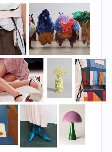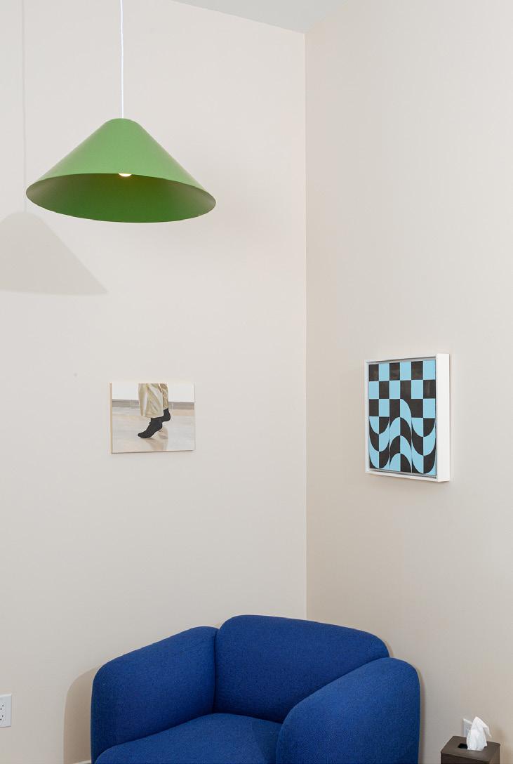 Cobalt wool lounge chair, Normann Copenhagen, starting at $3,500, available to order via hello@shopyowie.com, Glyph side table, Hem, $679, hello@shopyowie.com, Untitled 01 by Joshua Itiola, framed print version $250, available at shopyowie.com, Original Painting “Tiptoeing”, acrylic on panel, 11” x 14”, $650, Available to purchase via hello@shopyowie.com