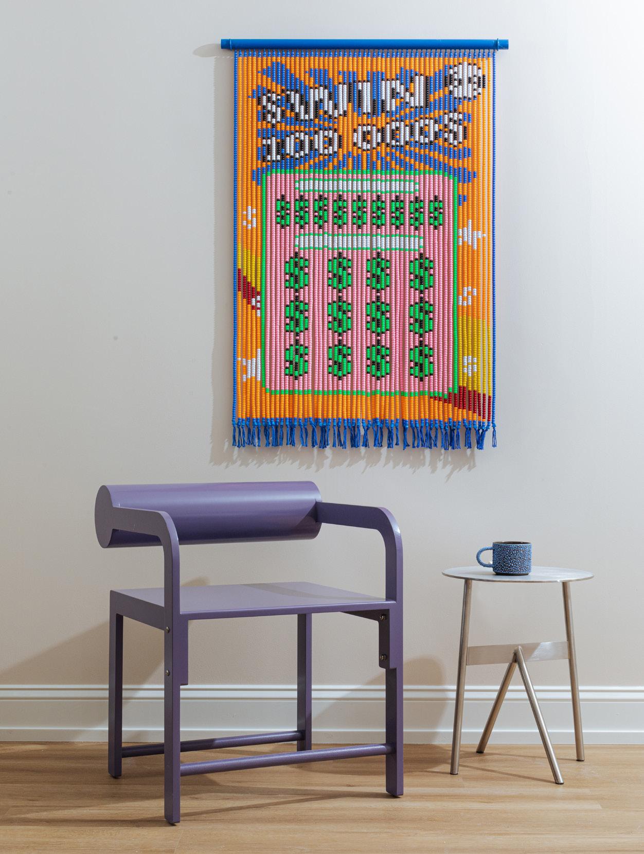 Chair by Waka Waka, from $2,000, Wakawaka.world, Beaded art made to order by Nooran Matties, $600, hello@shopyowie.com