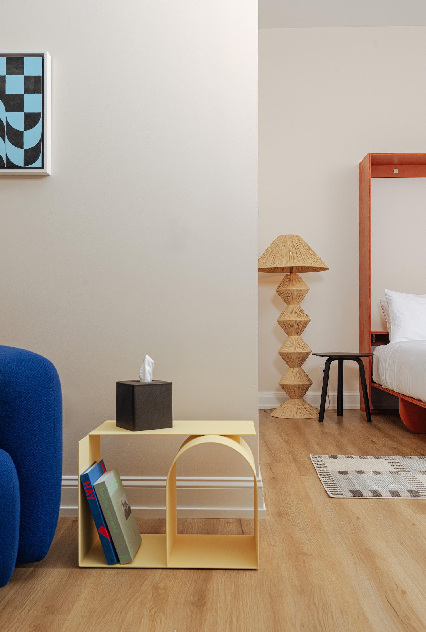 Bedroom Details: Murphy bed by Lori Beds, loribeds.com, bedside table, Hay, $295, available at shopyowie.com, floor lamp by Opalhouse for Target, $250, Target.com, Damas runner rug by Revival, $199, Revivalrugs.com
