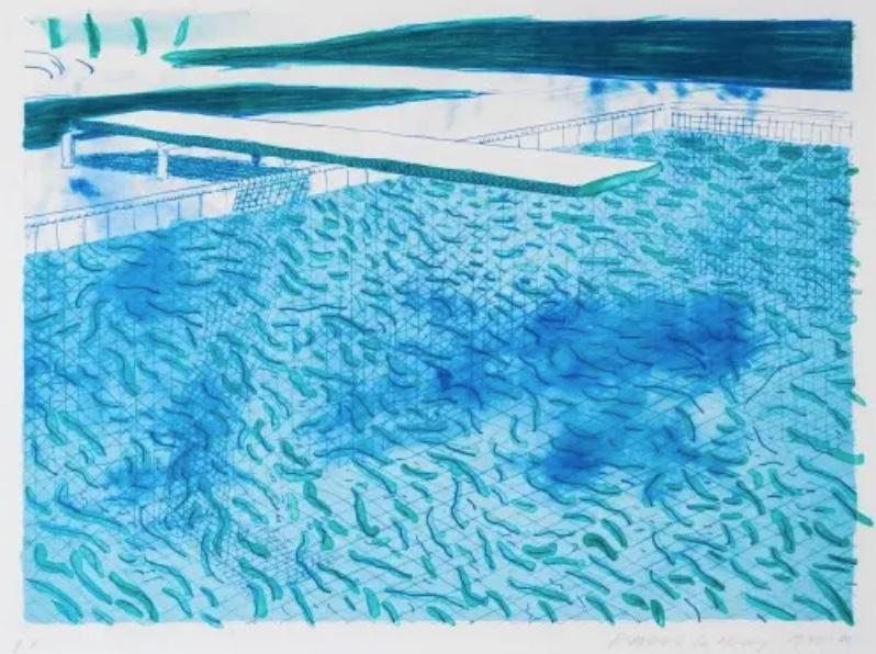 Color inspiration from David Hockney’s pool series. Artwork by Emily Burtner, see more at emilyburtner.com