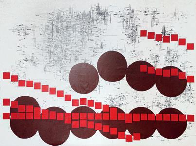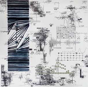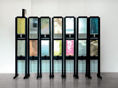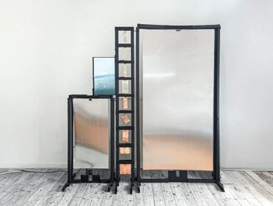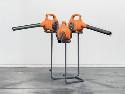 Motoriserte metallplater, vindmaskiner, videoprojeksjon, bilder og skulpturer.