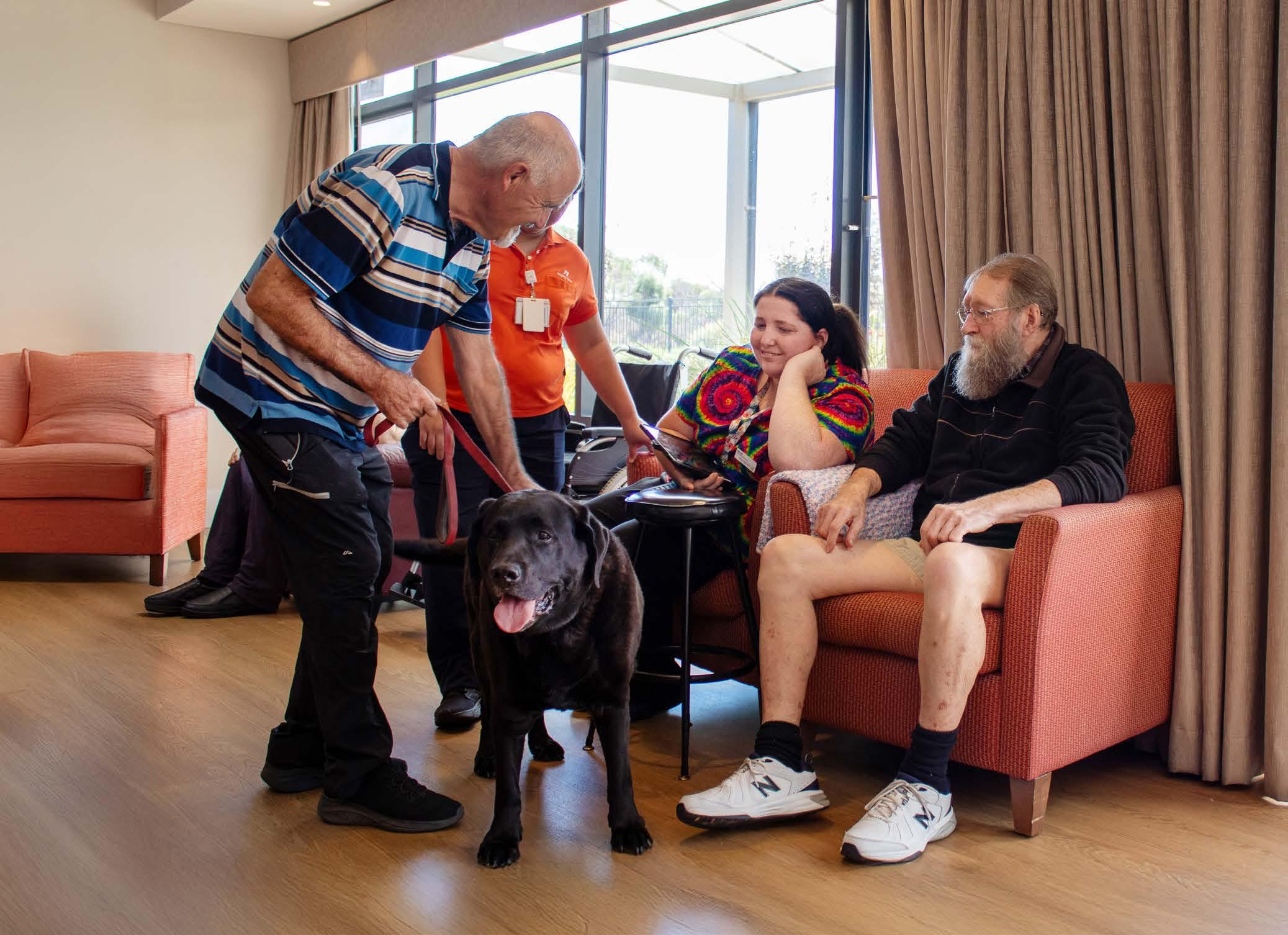One situation that really stood out was the lovely rapport built up between Newton and a dear lady over several months. She became very ill and was unable to speak for a number of days. On one visit, a carer carefully invited us into her room, and Newton gently snuggled up to her. She took one look at Newton and clearly said, “Would he like a drink of water?” Not long afterwards, she passed away peacefully. This was a very moving experience.