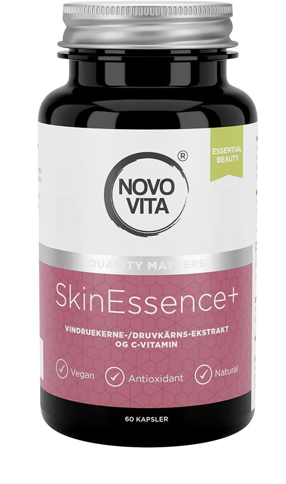 SkinEssence+ er baseret på vindruekerneekstrakt og C-vitamin som beskytter cellerne mod oxidativ stress samt bidrager til dannelse af kollagen.