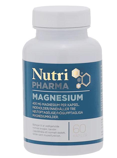 NutriPharma Magnesium bidrager til at vedligeholde normale knogler og tænder. Bidrager også til en normal funktion af muskler og nervesystem.