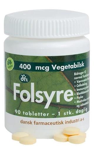 Sundhedstyrelsen anbefaler et tilskud af folsyre. Et dagligt tilskud på 400 mcg fra planlægning til og med 3 måneder inde i graviditeten.