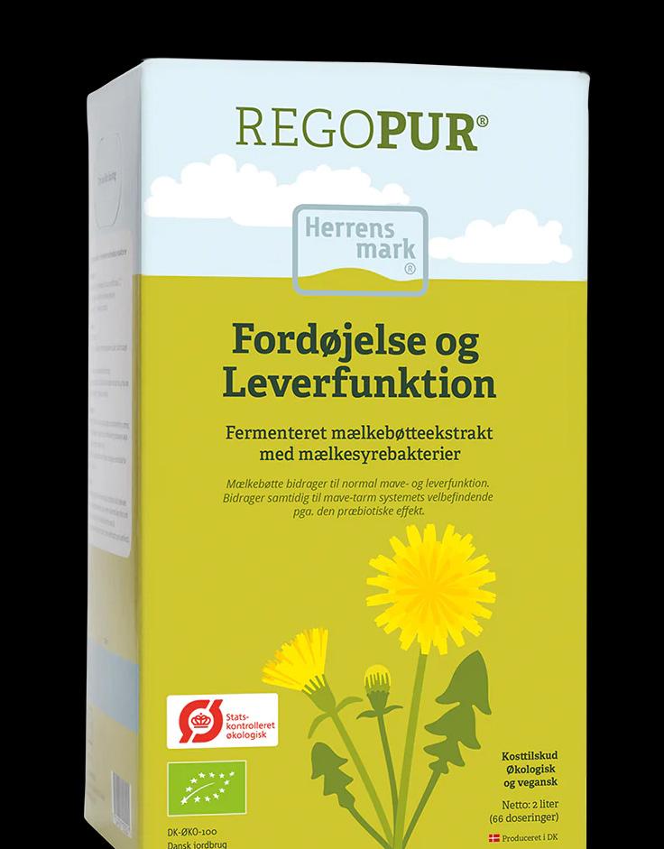 Hjælp din fordøjelse og lever på vej med REGOPUR; som indeholder fermenteret mælkebøtteekstrakt.