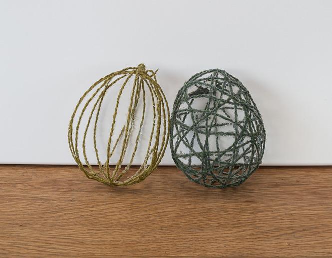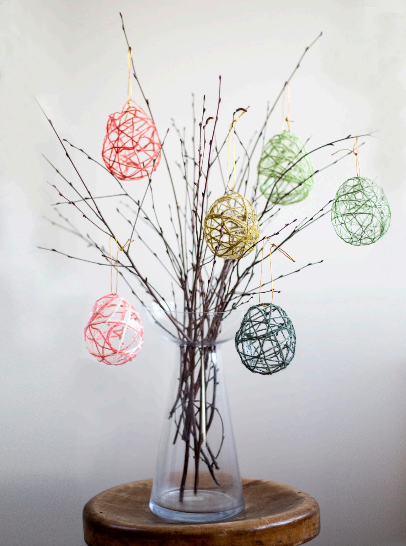 Tryck hål på ballongerna med en nål och peta ut dem från ägget. Pilla bort limrester med nålen.