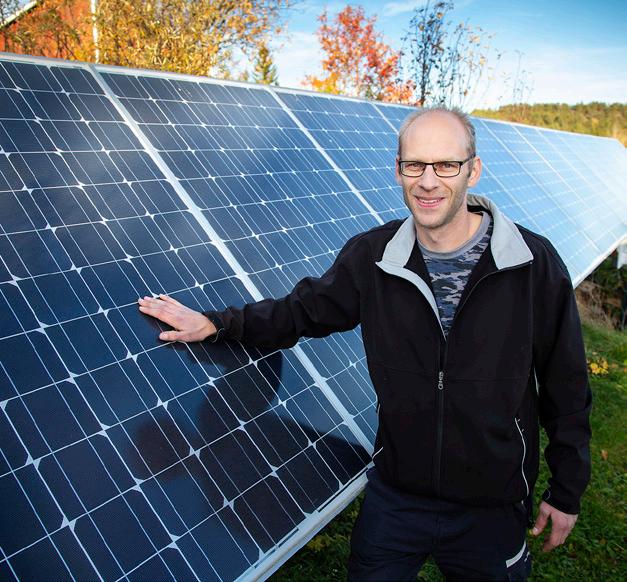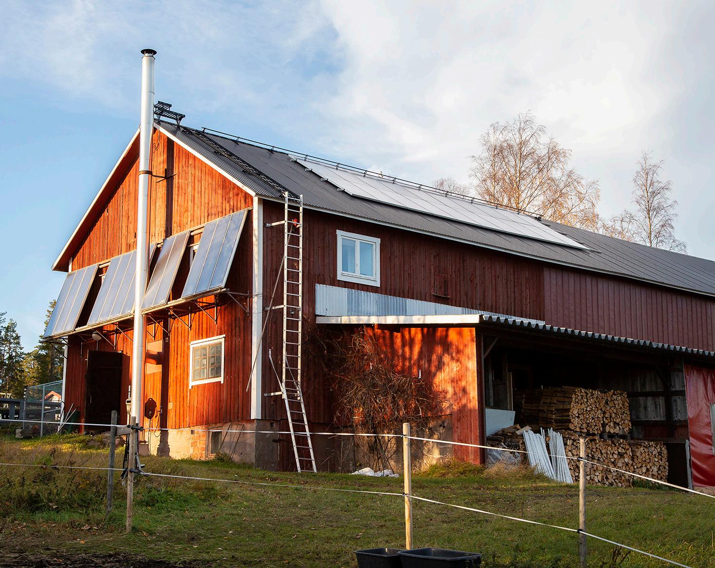 Men solpaneler finns det å andra sidan gott om på gården. Kombinationen av egenproducerad el och varmvatten, Johans teknikintresse och Angelicas engagemang för klimat och miljö har resulterat i att man nästa år räknar med att producera 23 000 kWh el och värme.