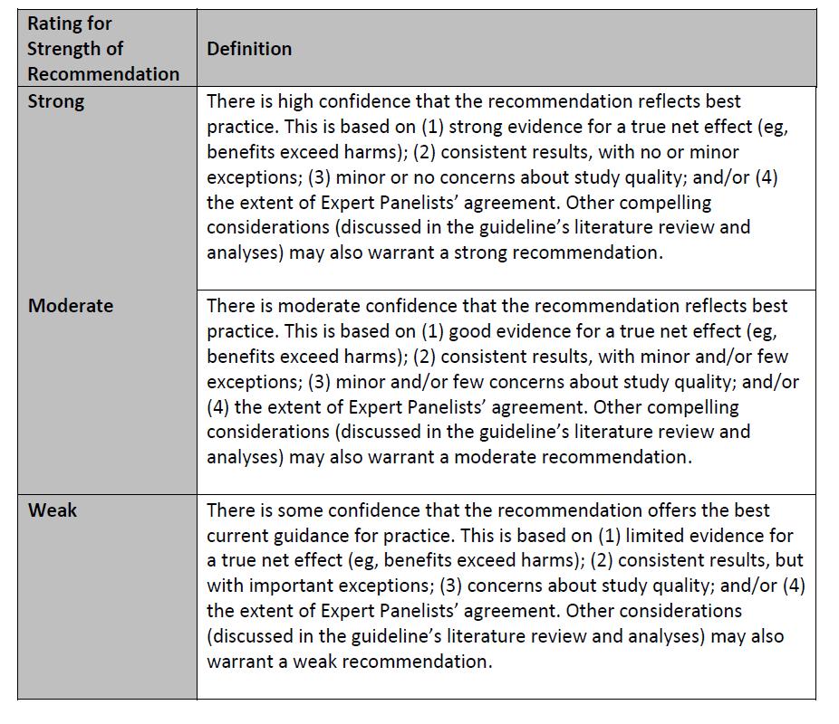 Guide for Strength of Recommendations