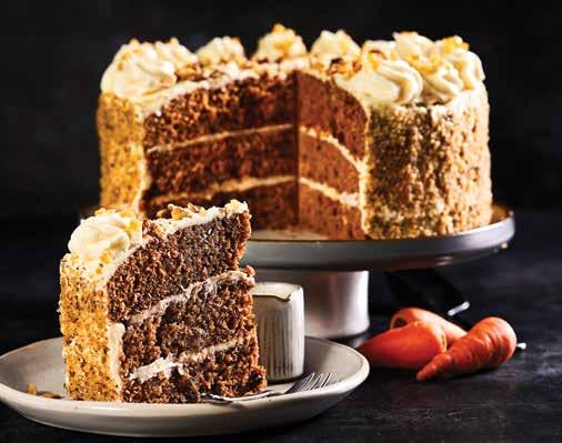 Over 11% of this hand finished cake is real carrot and the generosity doesn’t end there. The triple layer sponge cake is covered with cream cheese buttercream and covered in a walnut crumb, finished with a buttercream rosette and sprinkles of mixed peel on each slice.