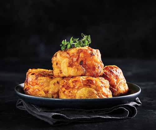 Fully finished individual Potato Dauphinoise oven bake from frozen, with a high cream content and emmental cheese for a premium, rich flavour. A perfect side to fish and meat dishes, but equally at home as the star of the plate.