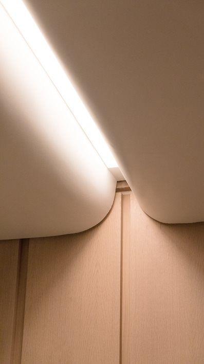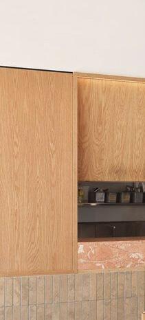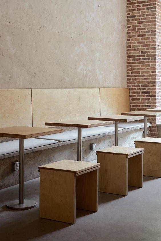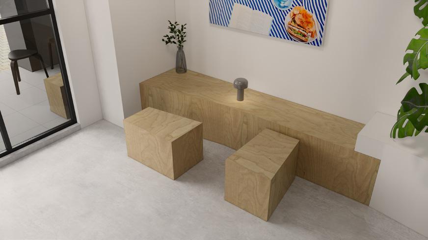 The Raw Looks concept present in the space is expressed through the materials used. Most of the wooden materials in the area utilize “Birch Plywood.”