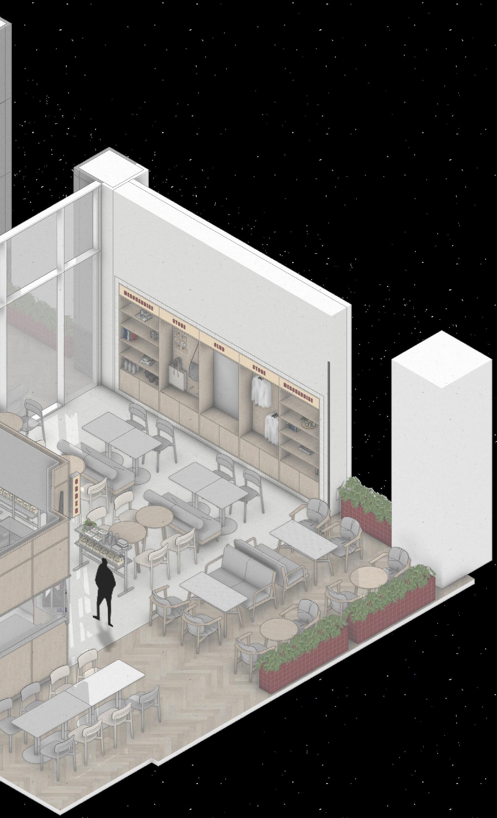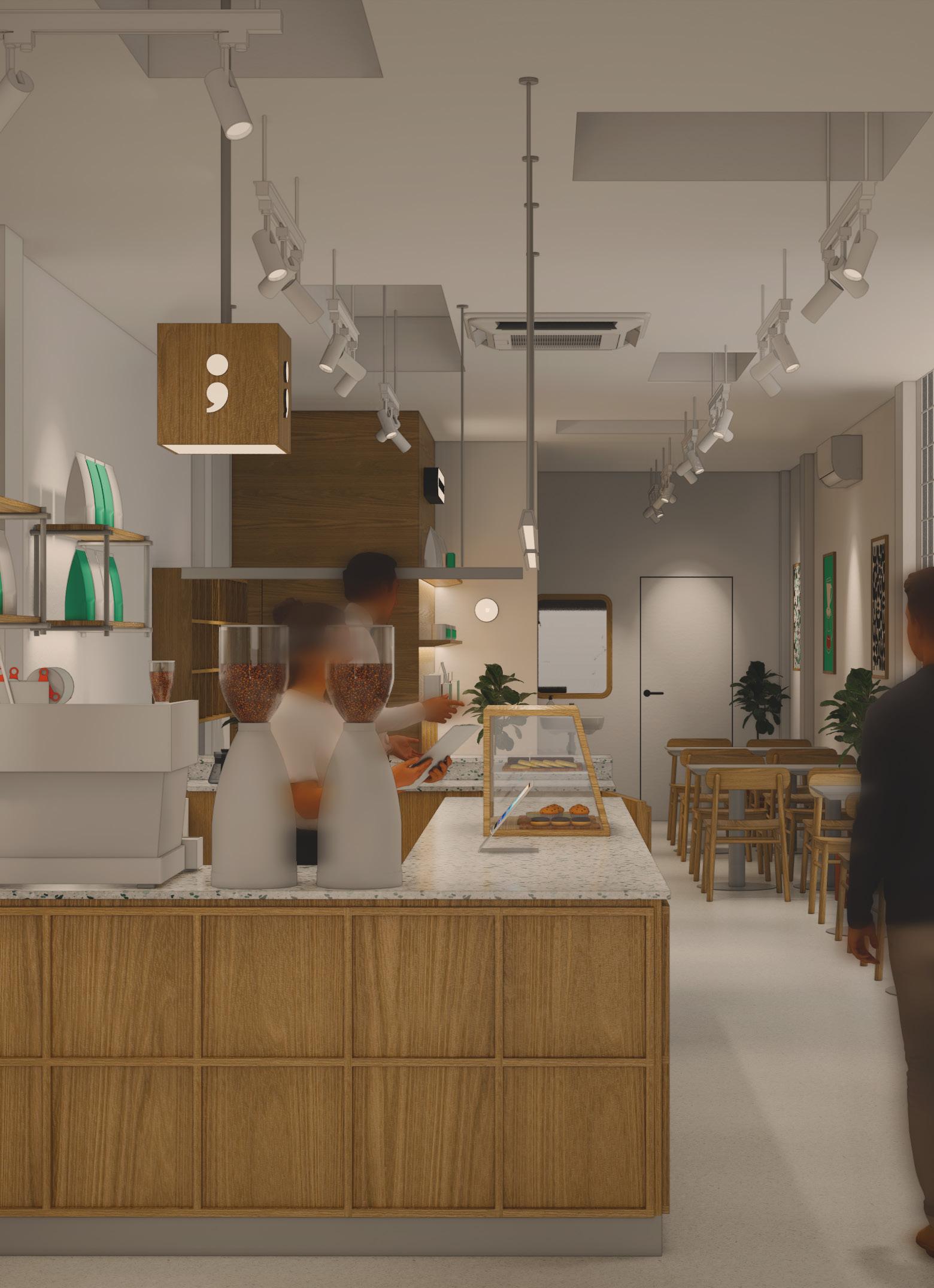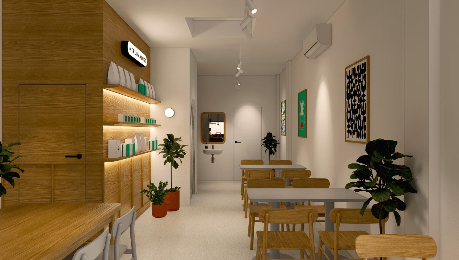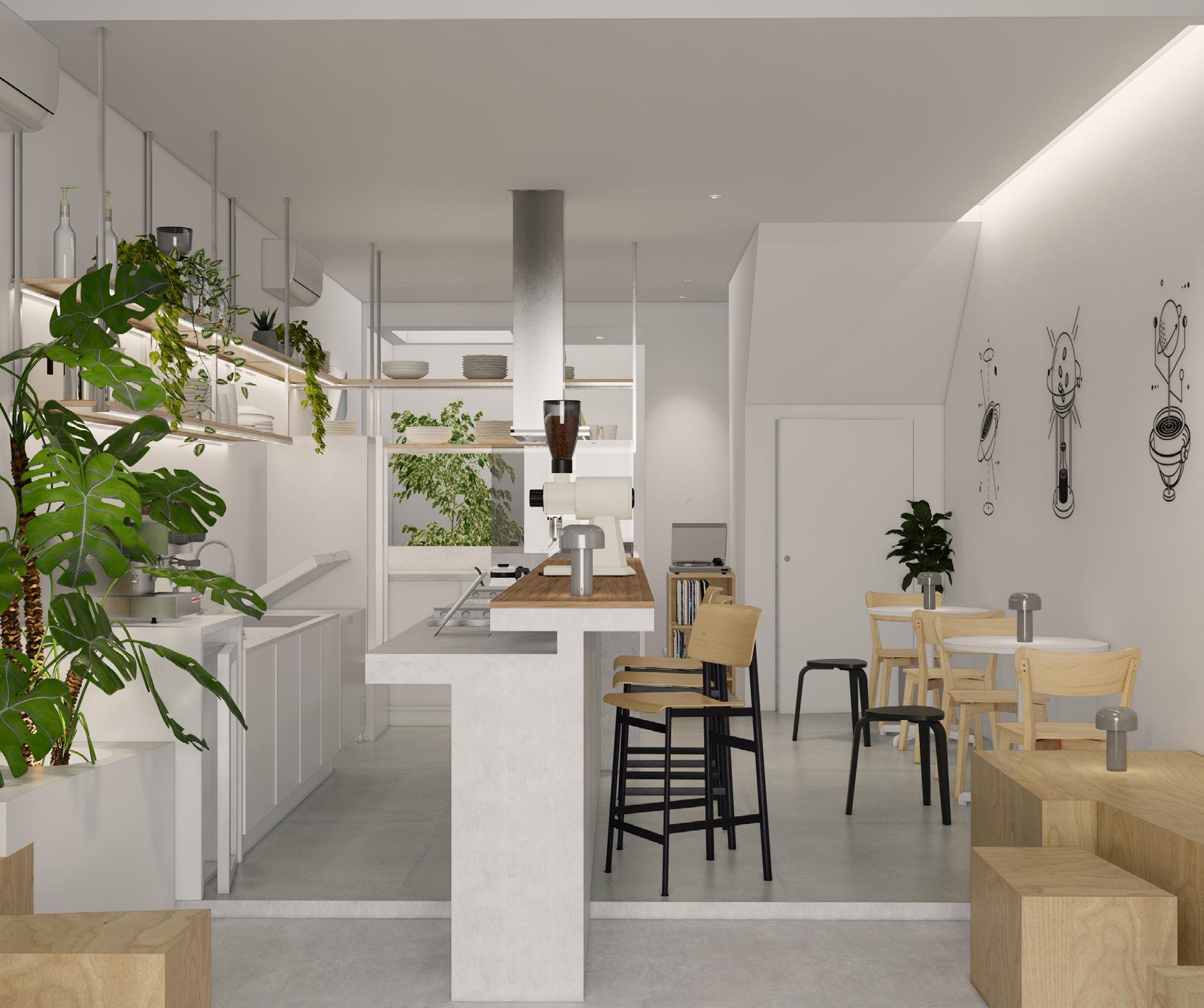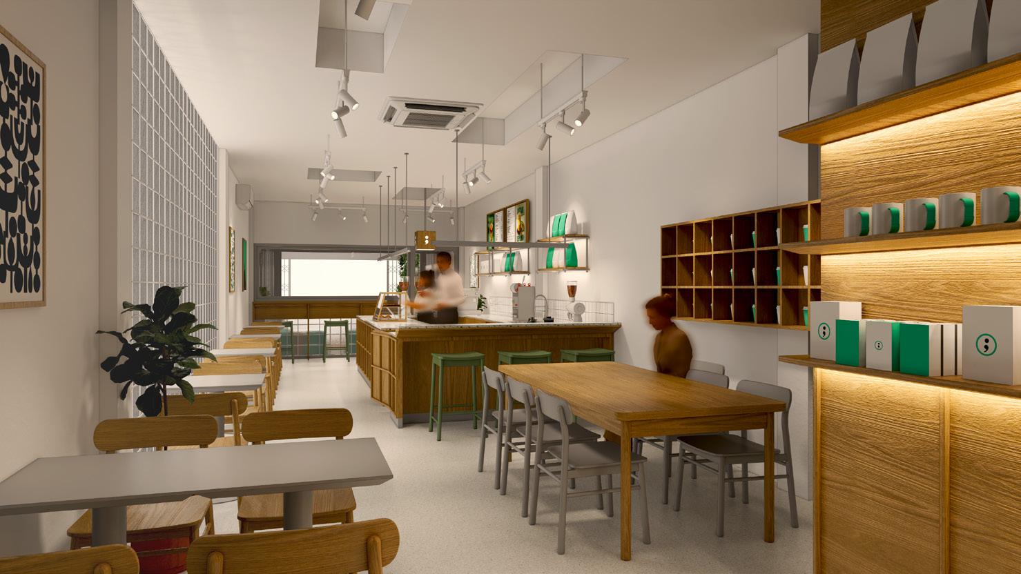 Presenting a coffee shop that is comfortable for both work and gathering. The interior design is simple yet functional, reflecting the lifestyle of city workers.