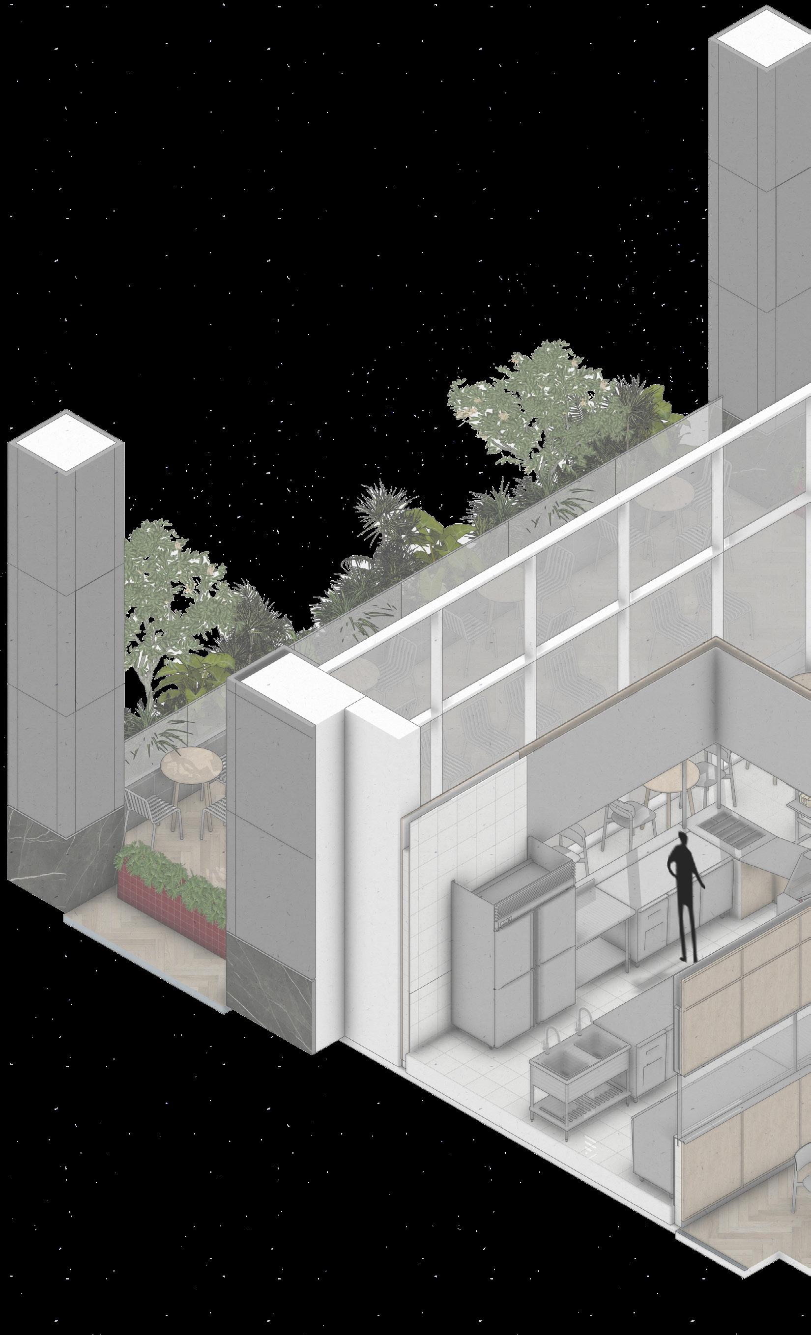 Another element used is in the shelving area, which is made from hollow stainless steel. Some parts of the building’s floor are finished with a coating of bare cement.