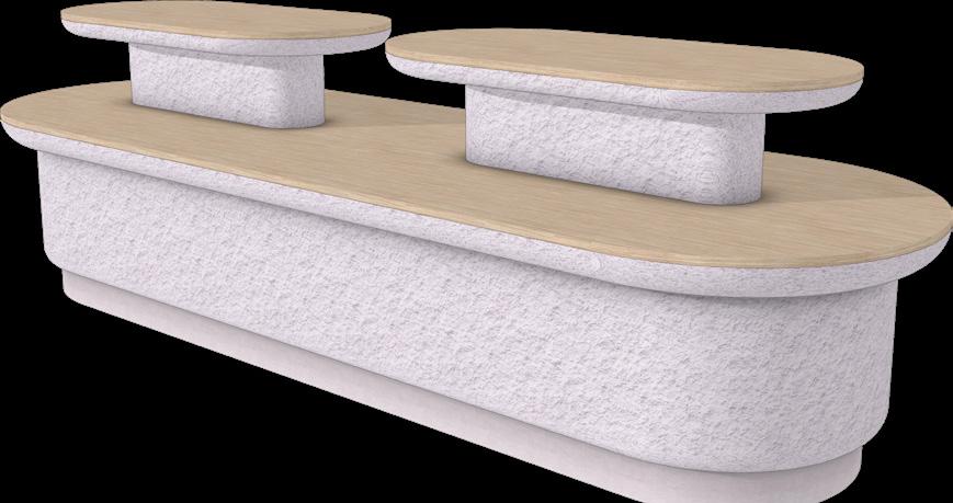 “Instead of making a stiff block-shaped stool, here we tried to cut it slightly diagonally, it gives more fluid impression.”