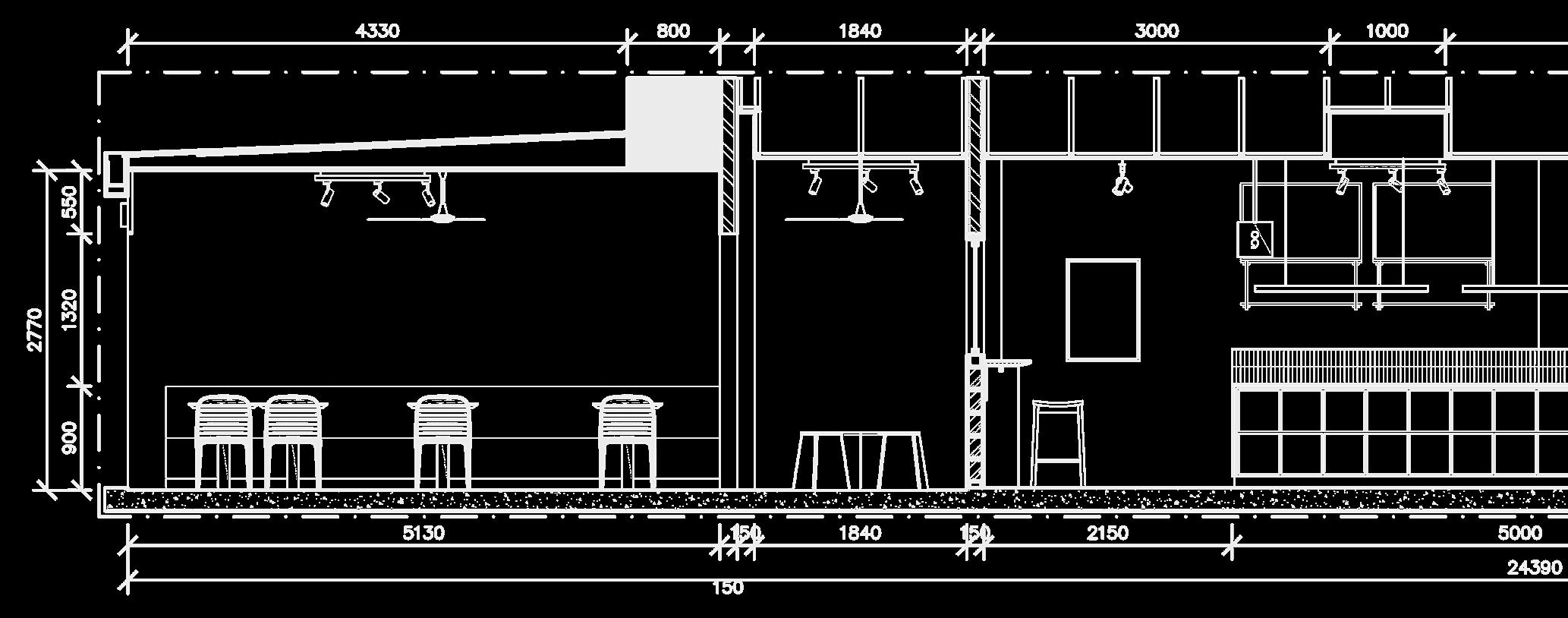 “Cashier and working space”.