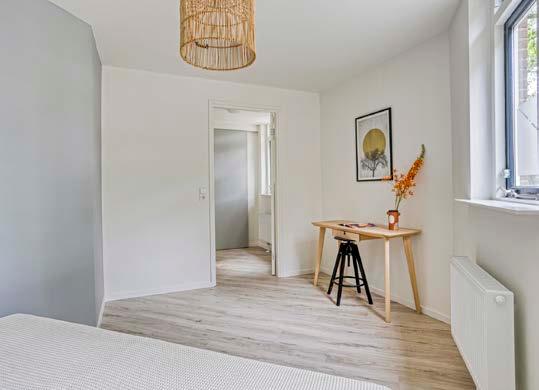 Een heerlijke ruimte waar je helemaal tot rust komt. De slaapkamer is afgewerkt met een moderne laminaatvloer en gestuukte wanden, wat bijdraagt aan een luxe uitstraling. Ruimte genoeg voor een comfortabel bed, kledingkast en wat persoonlijke accenten.