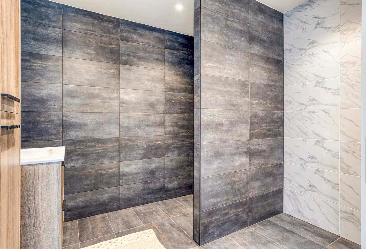 Fris en stijlvol! De badkamer is voorzien van een ruime inloopdouche, een modern wastafelmeubel dat ook meteen praktische bergruimte biedt en een aansluiting voor de wasmachine. Een fijne mix van functionaliteit en comfort. Vernieuwd in 2024. Het aparte toilet ziet er ook netjes uit.