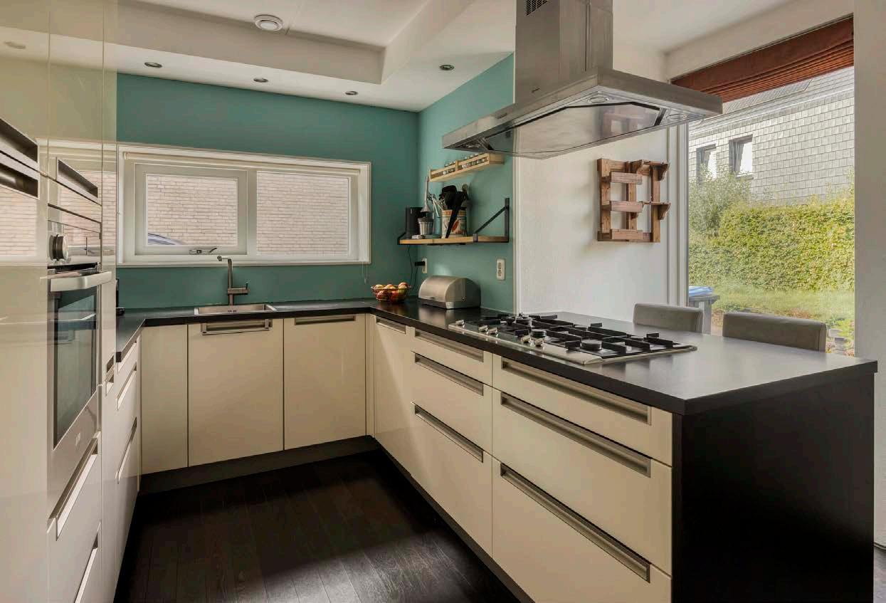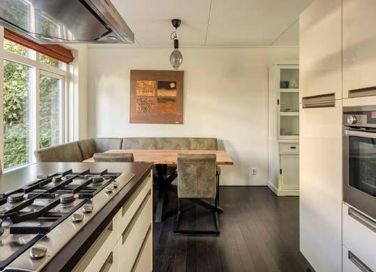De open keuken bevindt zich aan de voorzijde en is van alle gemakken voorzien. Denk aan apparatuur, voldoende werkruimte en genoeg kasten om alles netjes te houden. De strakke afwerking en het design maken koken hier comfortabel en eenvoudig. Terwijl je een maaltijd voorbereidt, heb je een fijn uitzicht op de rustige straat.