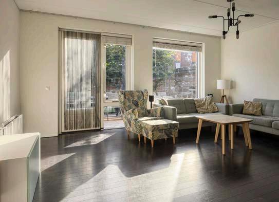 Bij binnenkomst in de woning merk je direct het lichte en open karakter. De hal is ruim opgezet en biedt toegang tot het toilet en de trap naar boven. Loop verder en ontdek de woonkamer, die fraai over de hele breedte van de woning is gesitueerd. Hier zorgen de grote ramen voor een mooie verbinding met de tuin. Of het nu een avond met vrienden is of een rustig moment met het gezin, deze ruimte voelt direct prettig aan.