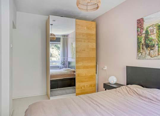 En oh, laat je niet vergeten door de buitenruimte. Beide balkons geven je die fijne alledaagse connectie met de groene omgeving. Het ene balkon grenst aan de keuken en is dé perfecte plek voor je kruidenplantjes of een ontbijtje. Het andere balkon, bereikbaar vanuit de woonkamer, biedt een heerlijke zitruimte met een uitzicht waar je elke keer weer blij van wordt. Dit is de plek waar je ‘s avonds geniet van een wijntje terwijl je kijkt naar de zon die langzaam achter de bomen zakt.