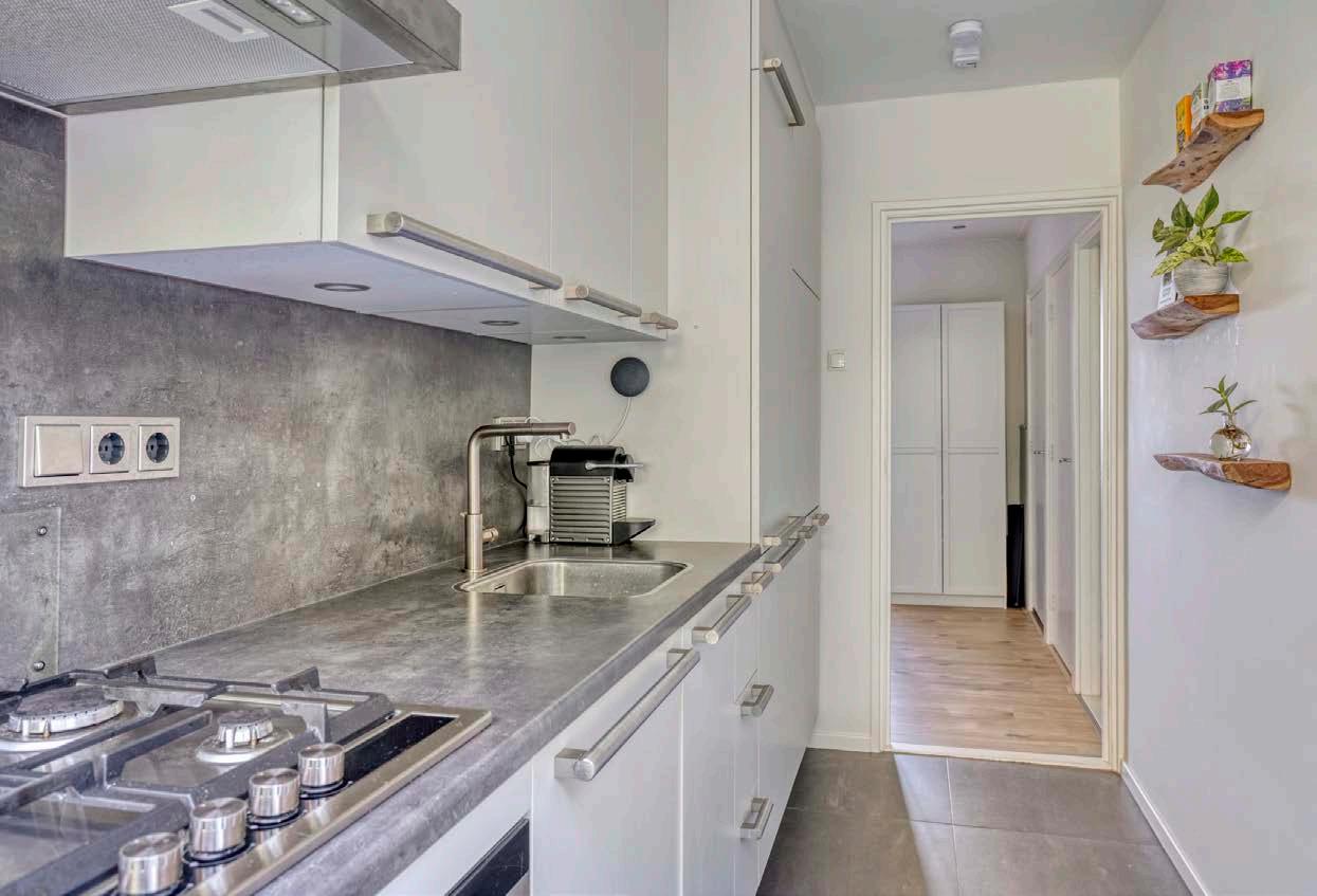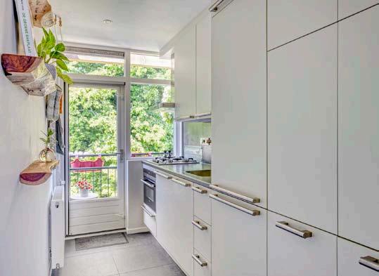 De moderne keuken is efficiënt ingericht in een praktische wandopstelling. De lichte kleurstellingen maken het een fijne werkplek om jouw kookkunsten naar een hoger niveau te tillen. Denk aan verse koffie in de ochtend, terwijl je vanaf je balkon de dag rustig begint met het schitterende uitzicht over het groen. Klinkt zalig toch?