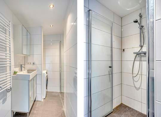 De badkamer is netjes en compact, voorzien van een douche en een wastafel, met daarnaast de aansluiting voor jouw wasmachine. Het toilet is apart, zodat je badkamertijd extra efficiënt benut kan worden – handig als je gasten over de vloer hebt.